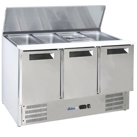 Stół chłodniczy sałatkowy 3-drzwiowy z pokrywą uchylną na 4x GN1/1 368 l - Hendi 236178