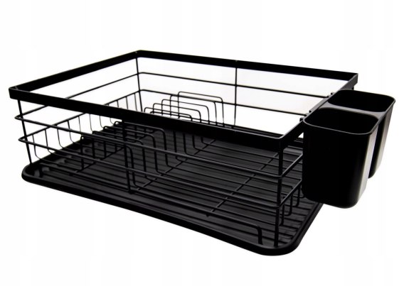 Suszarka do naczyń jest wykonana z najwyższej jakości materiałów - stal nierdzewna, tworzywo sztuczne, dzięki czemu jest praktyczna i trwała. Jednopoziomowa konstrukcja pozwala na wygodne użytkowanie, nie zajmując jednocześnie cennego miejsca na blacie kuchennym. Pozwala także na zmieszczenie dużej ilości naczyń. Posiada podstawkę z tworzywa sztucznego do gromadzenia wody, a także pojemnik na sztućce.