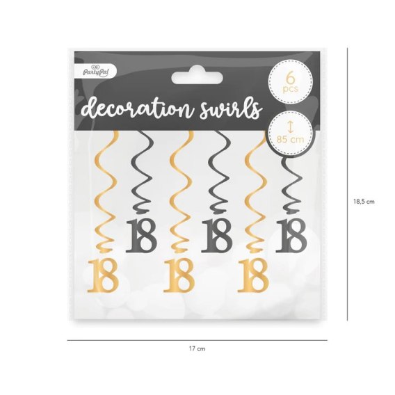Świderek okrągłe urodziny 18 czarno-złoty 6szt