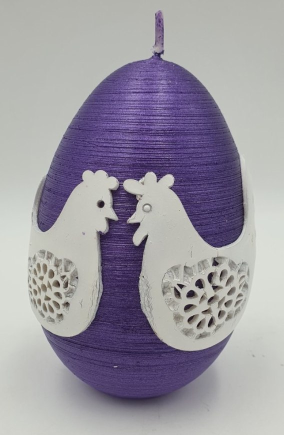 Świeca jajko 80 / 130 mm kura i kogut fioletowe - J80130DKIK