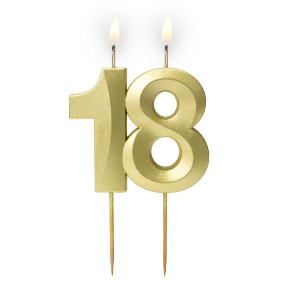 Świeczka urodzinowa cyferka "18" 5,9cm ZŁOTA-SATYNA na drewnianym patyczku ( długość patyka 4,0cm / 2cm )