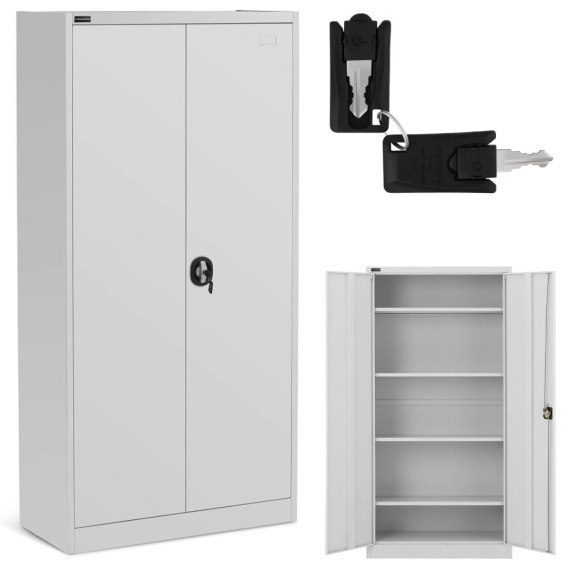 Szafa metalowa marki Fromm Starck idealnie sprawdzi się w biurach, urzędach, bibliotekach, szkołach i wszędzie gdzie trzeba przechowywać dokumenty oraz inne przedmioty. Szafa biurowa posiada cztery pojemne półki, które wytrzymają obciążenie aż do 160kg. Wytrzymały zamek z kluczem skutecznie zabezpiecza zawartość. Konstrukcja szafy na dokumenty została wykonana ze stali. Szafa metalowa zawiera wszystkie elementy do samodzielnego montażu.