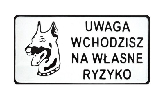 TABLICA 15*29CM UWAGA WCHODZISZ NA WŁASNE RYZYKO
