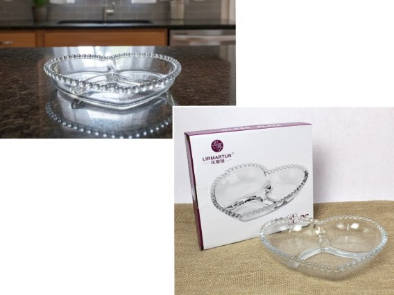 Talerz szklany PATERA SERCE dzielona na trzy 22 x 20 x 3,5 cm SGM-50522