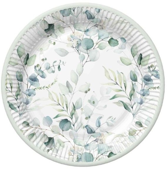 Talerze papierowe 18cm gałązki eukaliptusa 8szt. | 79-36