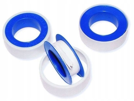Zestaw trzech rolek uszczelniającej taśmy teflonowej.