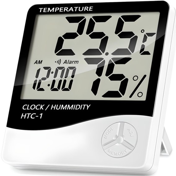 Elektroniczny termometr i higrometr to wygodne urządzenie do codziennego kontrolowania temperatury i wilgotności w pomieszczeniach. Wyposażony w duży, czytelny wyświetlacz LCD, zegar, kalendarz oraz funkcję budzika. Wykonany z białego tworzywa sztucznego, może być postawiony na blacie lub powieszony na ścianie. Idealny do domu, biura lub innych przestrzeni mieszkalnych.