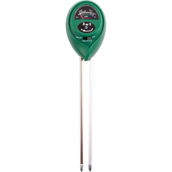 Urządzenie służące do pomiaru pH, wilgotności gleby oraz nasłonecznienia. Czujki znajdują się na końcu szpikulców. Odczytu dokonuje się na skali znajdującej się w plastikowej obudowie. Urządzenie nie wymaga użycia baterii.