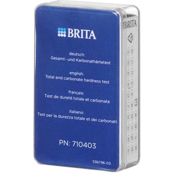 Tester Brita służy do oznaczania twardości węglanowej i całkowitej wody lokalnej.