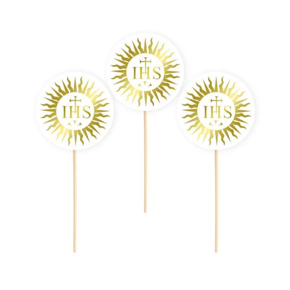 Toppery na tort komunijny IHS hostia biało-złote 6szt. 512287