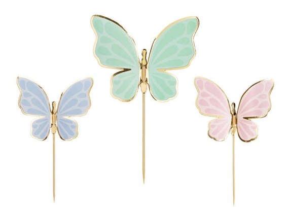 Nasze papierowe toppery w kształcie motylków to prosty sposób, by zamienić zwykły tort w prawdziwe dzieło sztuki! Zestaw zawiera 9 kolorowych motylków w odcieniach niebieskim, zielonym i różowym, które ożywią każdy deser i sprawią, że stanie się centralnym punktem Twojego przyjęcia.