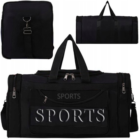 Torba podróżna sportowa na ramię 3 kieszenie - czarna