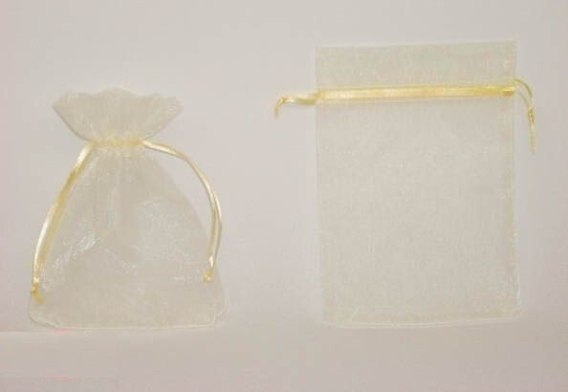 Woreczki wykonane z organzy, tiulu, ściągane u góry tasiemką satynową. Woreczki są delikatne oraz półprzeźroczyste i dlatego idealnie sprawdzają się jako opakowanie drobnych dekoracji, upominków, podziękowań dla gości za przybycie lub wyrobów jubilerskich. Woreczki pakowane są po 12 szt. do małego opakowania foliowego.