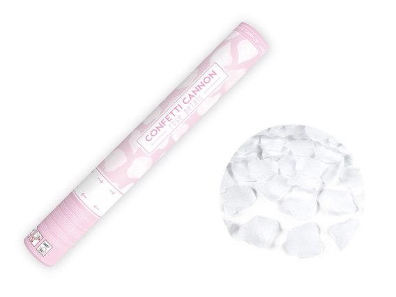 Tuba strzelająca z płatkami białych róż, 40cm