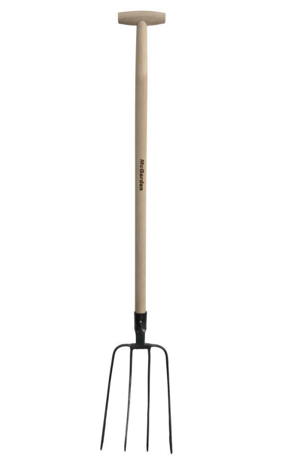 Widły ( gable) gospodarcze do przerzucania kompostu, obornika, cienkie zęby, stal węglowa hartowana do 46 HRC , trzon drewniany - bukowy typ T-100