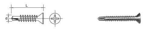 WKRĘT SAMOWIERCĄCY , z łbem stożkowym płaskim na końcówkę PH 2 , DIN 7504P