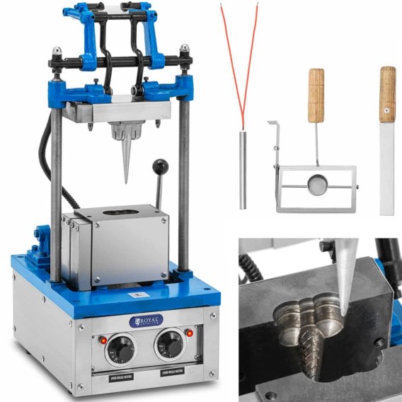Waflownica marki Royal Catering dzięki swojej mocy 1500 W pozwala wytworzyć 50-60 wafli / godzinę. W zależności od tego jak chrupiące mają być rożki ich pieczenie zajmuje od 1 min. Wafle do lodów produkowane są w klasycznym stożkowym kształcie i mają wymiary 74 x 124 mm. Użytkowanie, czyszczenie i konserwacja maszyny do wafli przebiega łatwo i intuicyjnie. Dołączona miarka ułatwia tworzenie idealnych rożków lodowych. Urządzenie wykonane zostało z trwałych i odpornych materiałów takich jak stal nierdzewna, żeliwo, stal i aluminium.