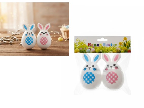 Wielkanocne jajka plastikowe 8cm królik 2szt. w folii EAA-2402