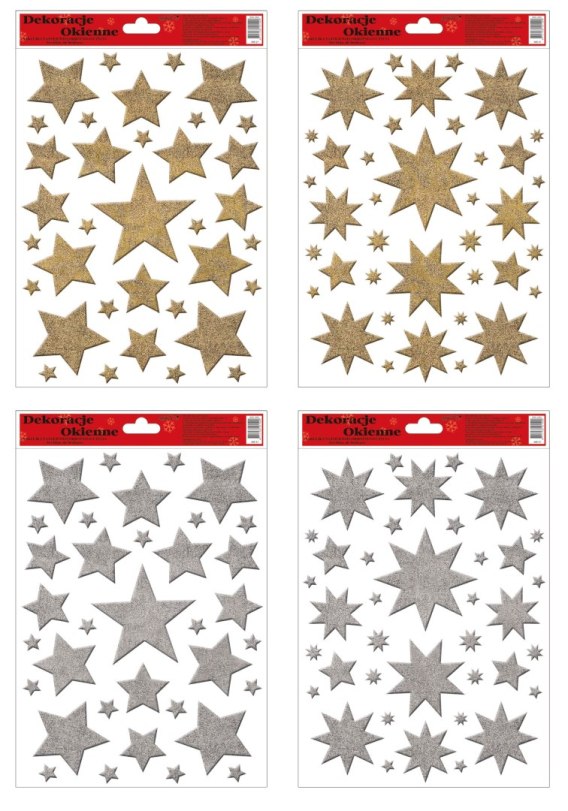 Witraż 20 X 30 gwiazdki złote / srebrne WB-21 / WXG-5003