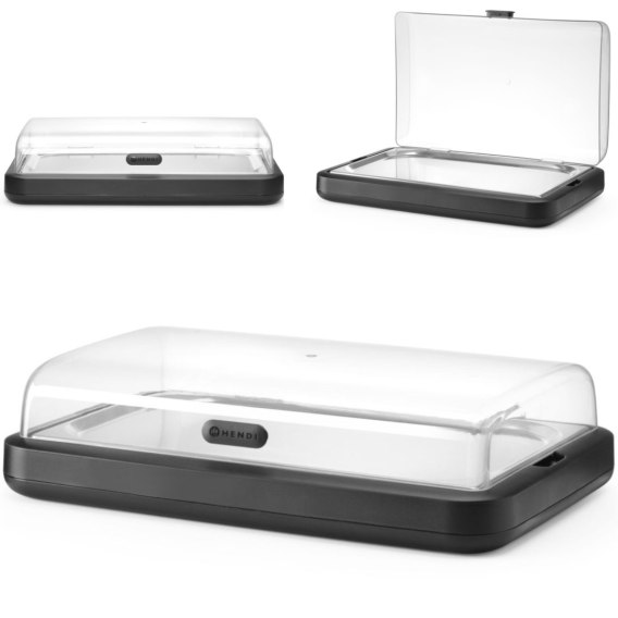 Witrynka chłodząca UNIQ HENDI zaprojektowana przez Roberta Bronwassera łączy design z funkcjonalnością zapewniając elegancką prezentację zimnych potraw. Solidna obudowa wykonana jest z polipropylenu, z przezroczystą pokrywą z ABS i tacą ze stali nierdzewnej gwarantującą trwałość. Zestaw zawiera tacę GN 1/1 i wkład chłodzący zapewniający optymalne utrzymanie temperatury.