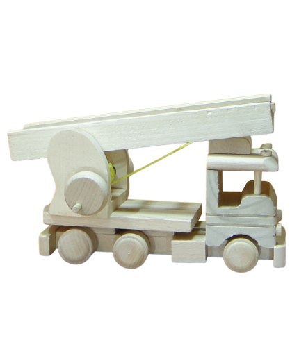 Wóz strażacki 23x13x15 cm w całości wykonany z drewna, z ruchomymi elementami.