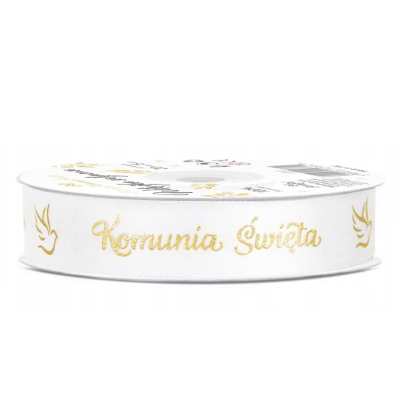 Wstążka satynowa biała z napisem Komunia Święta 20m