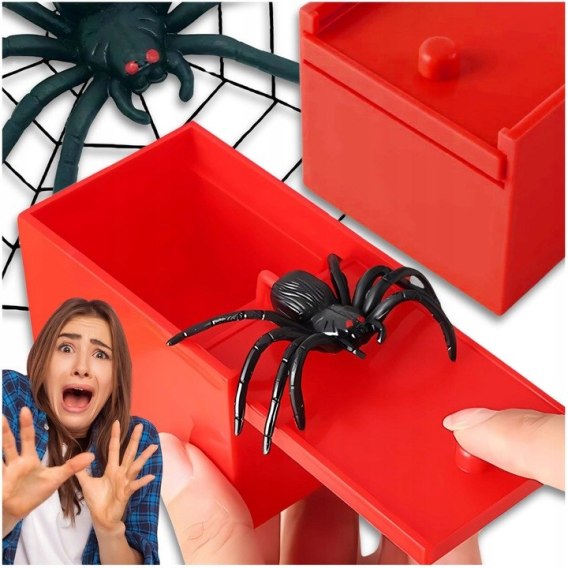 Wyskakujący pająk w pudełku - zabawna pułapka prank idealny gadżet na prezent i psikus! PID1526 ⚡