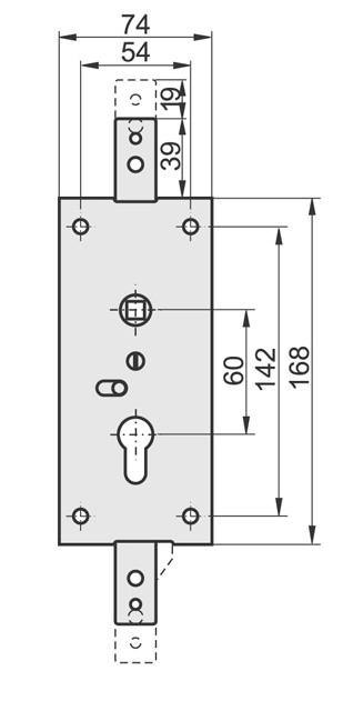 Zamek KASTEL-1 PIONOWY produkowany jest z dwoma lub z jedną dolną końcówką ryglową. Mechanizm zamka odblokowywany jest za pomocą klucza.