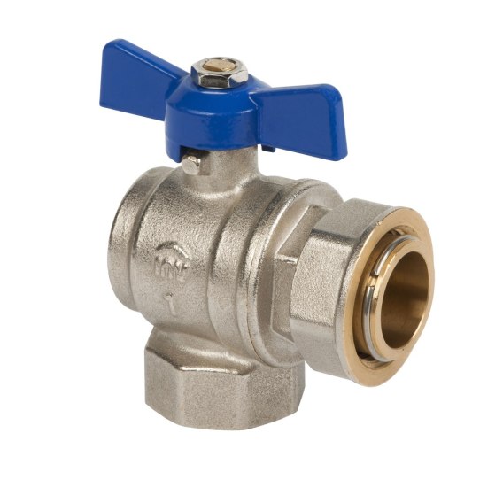 Zawór odcinający kątowy z półśrubunkiem do instalacji wodnych lub grzewczych,