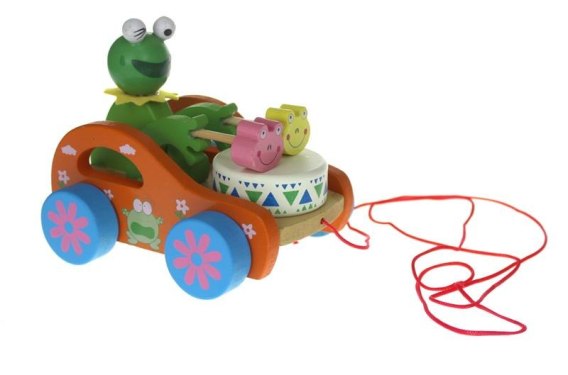 Zabawka drewniana auto do ciągnięcia z grającą na bębenku 14x12 cm SN52341