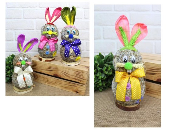 Zając z siana uszy z bibuły kokarda w grochy DY-08114