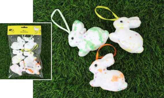 Zające styropianowe w brokacie z zawieszką (1 szt -7x5,5 cm) kpl 6 szt. EAD-2133