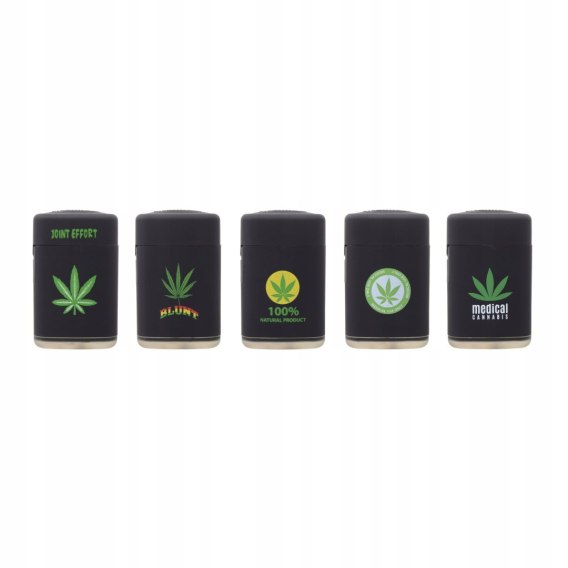 Zapalniczka żarowa czy też mini palnik gazowy z motywem liścia marihuany Posiada mocny płomień typu JET, niegasnący na wietrze.