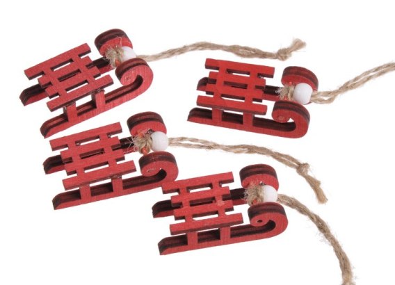Zawieszka 4szt. SANKI DREWNIANE CZERWONE 5cm | JK-2367-R