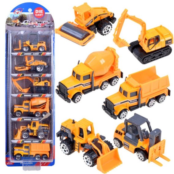 • Zestaw 6 szt pojazdy budowlane metalowe ZA3505