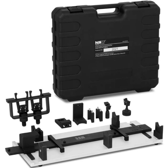 Zestaw do montażu wałka rozrządu marki MSW umożliwia skuteczne i bezpieczne założenie części. Profesjonalne narzędzie nadaje się do różnych modeli samochodów marek Audi, Porsche, Seat, VW i Skoda oraz innych z silnikami dysponującymi wytryskiem typu common rail (1.2, 1.6, 2.0, 2.7, 3.0, 4.0 i 4.2). Uniwersalny sprzęt sprawdzi się zarówno w specjalistycznych warsztatach, jak i prywatnych garażach. Wymiana wałka rozrządu bez uszkodzenia wspornika łożyska i głowicy cylindrów wymaga specjalnego narzędzia. Zestaw marki MSW to idealne rozwiązanie dla szerokiej gamy modeli pojazdów. 9-częściowy zestaw zawiera wszystko, co niezbędne do delikatnej wymiany części: obejmę ustalającą wałka rozrządu, dwie opaski ustalające, a także cztery wsporniki wałka rozrządu oraz blokadę wspornika wałka rozrządu. Narzędzie zostało wykonane z wytrzymałego materiału, dzięki czemu sprosta wszelkim wyzwaniom. Za sprawą trwałości, nawet intensywnie użytkowana blokada będzie służyć przez znaczny czas. Blokada rozrządu znajduje się w walizce z tworzywa sztucznego, która posiada uformowane wgłębienia na każdy element. Kompaktowy futerał bez problemu zmieści się w każdym warsztacie. Praktyczny uchwyt ułatwia wygodny transport kompletu.