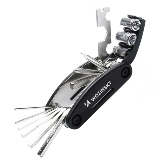Zestaw narzędzi Wozinsky WWZ-01N to kompaktowe narzędzie wielofunkcyjne w obudowie scyzorykowej, przeznaczone do podstawowych napraw i regulacji roweru. Składana konstrukcja 16w1 łączy najczęściej używane narzędzia w jednej, poręcznej formie, która ułatwia transport i przechowywanie. Całość wykonano z galwanizowanej stali węglowej, co sprzyja trwałości i odporności na zużycie. Niewielkie wymiary i niska waga sprawiają, że zestaw bez problemu zmieści się w kieszeni, plecaku lub torbie rowerowej. To praktyczne rozwiązanie do jazdy, wyjazdów outdoorowych i codziennej konserwacji.