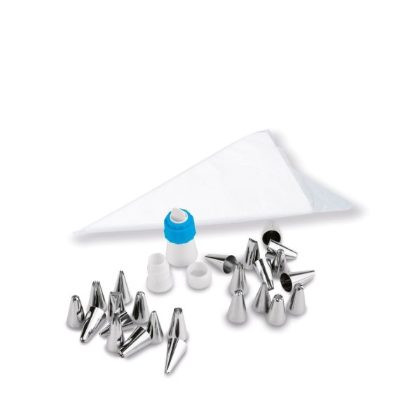 | Skład zestawu | - 3 końcówki do rękawa - 24 końcówki dekoracyjne - 50 rękawów cukierniczych |